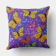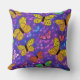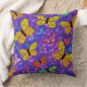 Mooie vlinders in geel, roze, oranje en groen met een achtergrond van neonvuurvliegen op een blauwe achtergrond. De onduidelijke vuurvliegjes geven het ontwerp een cool 3D effect, waardoor de vlinders het gevoel hebben dat ze uit de kussen komen.