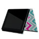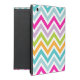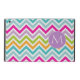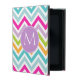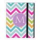 Moderne iPad-draagtas, gemaakt in een prachtig helder roze, lavender, groen, aqua, geel en wit chevron zigzag-patroon. Een ronde lavender gekleurde schijf, op de voorkant, heeft een groot wit monogram met één letter. Pas de brief voor jezelf aan of als een liefdadig cadeauidee.