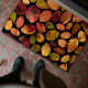 Voeg deze herfst een natuurlijke elegantie toe aan uw home décor met deze opvallende doormat, met een algemeen patroon van richly gekleurde valbladeren op een zwarte achtergrond. Het palet van verschillende tinten rood, oranje, geel, groen en bruin is een aanvulling op een breed scala aan huizenstijlen en kleurenschema's. Plaats de toon voor uw seizoensgebonden entertainment en vier natuur met deze prachtige en grafische pop van kleur aan uw deur.