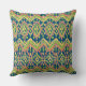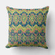Een chic, kleurrijk Sierkussen of kussen met een etnisch Ikatpatroon in terracotta, goudgeel en groen op een diepe blauwe achtergrond. Als onderdeel van het collectie 'Ikat' in Posh & Painterly kunt u deze Pillow eenvoudig aanpassen door de Ikat-patroontegel te wijzigen of te roteren. Dit patroon past bij elke piloot of elk kussen.