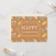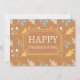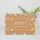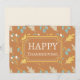 Thanksgiving wenskaart met de woorden "Happy Thanksgiving" op een achtergrond van kleurrijke valbladeren. Voeg je eigen bericht aan de achterkant toe.