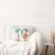 Funky letter M monogram gooit kussen. De letter M wordt uitgevoerd in verschillende patronen, waaronder een zebra-dierlijk gedrukt, funkcontroles en polka-stippen. Het is voorzien van een grote bloem in roze, oranje en geel. De letter m monogram staat uit met zijn heldere kleuren. De achtergrond is een gevlekt waterspatpatroon.