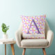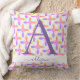 Decoratief gooien kussen in een kleurrijk vlinderbloempatroon met monogram initiaal en haar naam. De achterkant van de kussen coördineert het bloempatroon, zodat je er twee ziet.