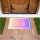 Helder en kleurrijk portier perfect voor uw deur! Het bevat een prachtige pastelregenbooggradiënt met het woord "Hallo".
