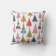 Deze holiday-kussen met thema's hebben een herhalend patroon van moderne kerstbomen in verschillende kleuren en patronen. De afbeeldingen worden geplaatst op een witte achtergrond. Festief en kleurrijk! De achterkant heeft hetzelfde patroon.