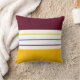De moderne werpkussens voorzien van een eenvoudig gestreepte vormgeving in het kleurenpalet van de herfst: ambergeel, wit en mulberry paars.