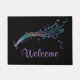 Colorful Muzieknoten Black Welcome Mat. Rainboogkleurige muzieknotities en medewerkers en aanpasbare tekst op een zwarte achtergrond. Ideaal voor buiten je studio of thuis en een geweldig cadeau voor je favoriete muzikant of muziekliefhebber.