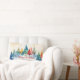 "Merry Christmas" is written in editable seasonal red script on this winter holiday pillow. Colorful Christmas trees cover a snowy hillside in a lovely vintage-inspired watercolor painting. This is a very nice gift idea. Be sure to edit the example family name and year.