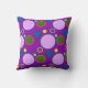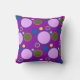Cirkels, vlekken en grillige polka stippen sieren dit kussen. Heldere gekleurde cirkels op een paarse achtergrond voegen kleur en plezier toe aan elk interieur.