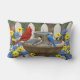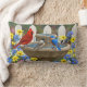 Een lenteverzameling van kleurrijke vogels en bloemen rond een waterfontein-vogelbad.
