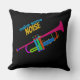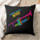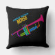Koel met het muziekkenteken de kussens af op een zwarte achtergrond, met een afbeelding van een kleurrijke trompet. De tekst van de douane leest, maakt wat lawaai, en kan worden gepersonaliseerd om te lezen wat u wilt.