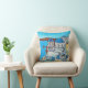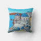 Vibrant, gestileerd schilderij van prachtige Santorini, Griekenland met zijn majestueuze blauwe dome van populair kunstenaar Lisa Lorenz op een stijlvol kussens