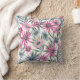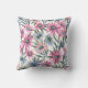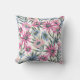 Decorative pillow with a vibrant floral pattern of pink, purple, and blue flowers with green leaves against a light background, front and back view.