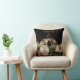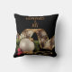 Elegante vakantie stilleven met een wit glitter ornament met een wit en gouden lint. Ook in het stilleven, een tak van groenblijvende en rode bessen. Het stilleven speelt zich af tegen een klassieke zwarte achtergrond, met de woorden COMFORT & JOY bovenaan. Dit ontwerp verschijnt op de voor- en achterkant van het kussen.
