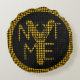 Sierkussen, rond zwart met gouden honden-tand ontwerp aan de voorkant en zwart, wit en goud concentrische cirkels ontwerp en "COLUMBIA, MISSOURI CENTRUM VAN HET UNIVERSUM" en het Grote Zegel van Missouri in het midden en "Columbia, MO" aan de bovenkant in script met Y-NOT-ME en Y-NOT-ME logo op de achterkant over zwart en gouden houndstooth ontwerp. Dit ontwerp is een shout-out van een centrum voor hoger onderwijs in Columbia, Missouri.