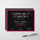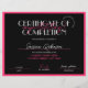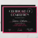 Schoonheidscursus Certificaat van Voltooiing in zwart-wit en warm-roze, perfect voor de certificaten van voltooiing voor welslagen, weduwen of andere schoonheidscursussen. U kunt dit moderne certificaatuitreikingsontwerp ook gebruiken voor elk type beroepsdiploma. Deze roze aesthetische cursus onderscheidt moderne scriptlettertypen die een mooi certificaat van prestatiegerelateerd ontwerp maken.