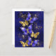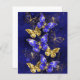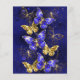 Composition of luxurious sapphire and gold jewelry butterflies on blue texture background.