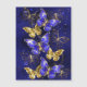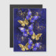 Composition of luxurious sapphire and gold jewelry butterflies on blue texture background.