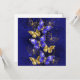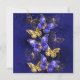 Composition of luxurious sapphire and gold jewelry butterflies on blue texture background.