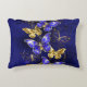 Composition of luxurious sapphire and gold jewelry butterflies on blue texture background.