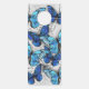 Verticale compositie van realistische, blauwe en witte morpho vlinders op grijze textuur achtergrond. Morpho blauwe vlinder.