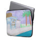 Dit computersleeve is ontworpen met een gemengde afbeelding van een klein Caraïbisch dorp naast een turquoise bay.
