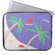 Dit computersleeve is ontworpen met een eilandengroep palmen, een zandstrand, blauw water en een zeilboot.