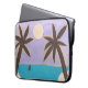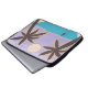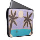 Dit computersleeve is ontworpen met gedempt palmen en een lavendere hemel met een gele maan.