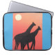Dit computersleeve is ontworpen met mijn afbeelding van twee giraffen gedempt door een oranje zonsondergang.