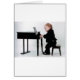 Baby speelt een grote piano van de baby met diepe concentratie.