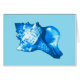 Digitale weergave van een conch - tinten van diep kobaltblauw tot luchtblauw met wit tegen een licht luchtblauwe achtergrond