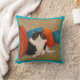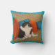 Een grote tuxedo kat zit op de bank met kussens om hem heen en hij staart naar jou. Grappig en griezelig...Een geweldig stuk voor de bank.