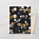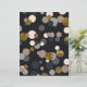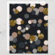 Een patroon van willekeurige confetti stippen in een pastelperzik, maple-brown en grijs palet, met goudglitter op een donkere achtergrond.