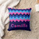 Een monogram gooi kussen met een helder, kleurrijk patroonontwerp van blauwe en roze chevrons. Creëer Het perfecte aangepaste geschenk door op de knop "Gepersonaliseerd" te klikken om een naam of aangepast bericht toe te voegen in het veld sjabloon. Selecteer de link "klik om verder aan te passen" om het lettertype, de tekstgrootte en meer te wijzigen.