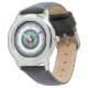 Blauwe ogen iris © Sunny Mars Design. Cool, leuk op maat gedrukt blauw oogbolhorloge met een trendy, moderne, mooie, unieke, freaky, griezelige, rare en verdraaide grafische illustratie van een opvallende grote blauwe realistische oogboliris van een oog. Andere kleur oogbal design zijn ook verkrijgbaar in de winkel.