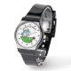 Coolest men's wristwatch designed with a billiards theme humorous style with cool rebel pool shark intentionally scratching the eight ball off the table in a fit of rebellion as a novelty men's gift for the billiards or pocket pool fanatic.
