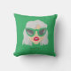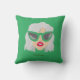 This Pillow graphic features a woman with grey hair, dark pink lips, and sleek black cat-eye glasses. The design is striking and modern, with a minimalist feel that is perfect for any stylish individual.