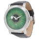Green Eye Iris - GREI100 © Sunny Mars Design. Cool, leuk op maat gedrukt groen oogbolpolshorloge met een trendy, moderne, mooie, unieke, freaky, griezelige, vreemde en verdraaide grafische illustratie van een opvallende grote groene realistische oogboliris van een oog. Andere kleur oogbal design zijn ook verkrijgbaar in de winkel.