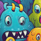 Cool kinder monster betegelde patroon unisex Wallpaper