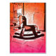 Een kleurrijke afdruk van een houten rotspaard in een digitale waterverf pop ziet er roze en oranje uit. "kinderen", "kinderspeelgoed" "paard" "houten paardenstaarten" "pop kunst" "kleurrijk" "roze en oranje gesteente paard"