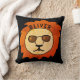 Cool Lion Head Sinaasappel Zwart Kind`s Naam Kussen. Een coole leeuw met zonnebril op een zwarte achtergrond. Jouw namen toevoegen of wissen.