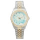 Een stijlvol en gesofisticeerd horloge met een elegant faux marmer patroon met draaiende kleuren in turquoise blue en crème kleuren. Het klokgezicht heeft kunstdecostijlaantallen.
