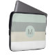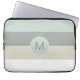 Een koel en kalmerend kleurenpalet van stoffig blauw, middelgrijs, flauw grijs en wit voegt minimalistische aantrekkingskracht aan dit computersleeve toe. Een passend blauw rond lijst omringt uw gewenst monogram of andere tekst. Geef het steekproefmonogram uit dat met uw initiaal of andere tekst wordt getoond.