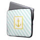 Cool Mint White Stripes Golden Anchor Laptop Sleeve