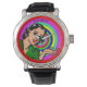 Cool Retro Pop Art Girl in kleurencirkels Horloge