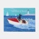 Labrador Deuren Mat. Super Cool Labrador Retriever honden hebben plezier met hun motorboot in het zee. Gele labrador chauffeur is zo koel als ijs!! Black Labrador is een ster! Chocolate Labrador houdt het leven vol. Leuk voor hondenliefhebbers die van Labradors houden. Prachtige zomervakantie-Uitzicht met Labradors en Zee en een boot en een lichthuis. Whimsical and grappige Labrador Summer Painting geschilderd door Naomi Ochiai.
