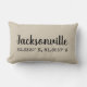 Jacksonville en zijn geografische coördinaten zijn gedrukt over deze lumbale kussen in een oude typeset voor schrijfmachines en een Rustic-thema. Het zwarte lettertype contrasteert mooi tegen het natuurlijke roomlijnde weefsel, waardoor de kussen een mooie blik en een mooi gevoel krijgen. De Cooerdinaten Pillow is een perfecte maat voor een stand-alone stoel in een hol, kantoor, woonkamer of zou een leuke afsluitende aanraking op een bed of vensterstoel maken.