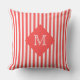 Dit is een tweezijdig kussen met coördinerende kleuren en patronen op zowel de voor- als de achterkant, samen met je monogram, met grote vettige strepen in een zalm en wit kleurenpalet dat coördineert met het Salmon Damask-collectie, zodat je je gasten kunt mengen en matchen om je gasten te bieden wanneer je buiten een zacht en somber blik naar je patio decor kijkt.