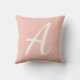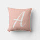Eenvoudig schattig monogram kussen in licht koraal met een grote moderne scriptletter.