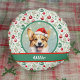Dit ontwerp is voorzien van charmante kunstwerken van een Welsh corgi, die een waterverf uitstraling heeft. Het is ingesteld tegen een sprankelende wijze groene en sprankelende lichten achtergrond, en dan omzoomd in een donkergroen met een rood en groen kerstversiering patroon. De naam van je hond of die van je ontvanger staat in het wit op een groene en rode banner. Typ de gewenste naam van de hond in het gedeelte Personaliseren.
